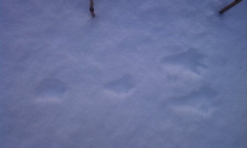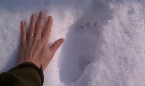 Followed the bear tracks and left a friendship offering for the bear this morning. I guess it was accepted because the bear was in the yard when I came home! Rabbit, fox and skunk made a show as well. Happy spring, all!