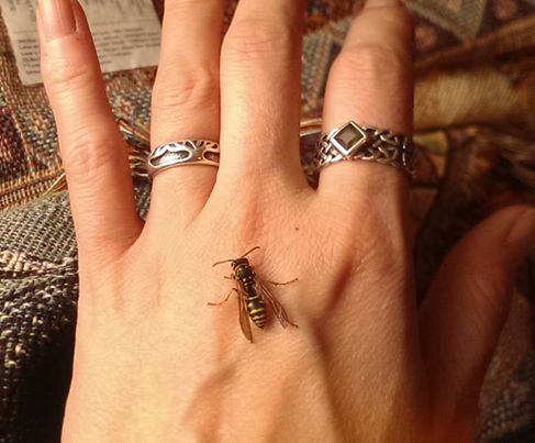This beautiful, european paper wasp queen had chosen an amazing spot to overwinter…inside my bird feeder. While it was safe when she chose the spot, it was soon to be filled in and unfit habitat for anything living, never mind royalty! I was able to make her a new home to overwinter, while she warmed up a bit inside. I didn’t want to upset her pattern too much, so it was a quick visit; however, I enjoyed my time with the queen immensely!