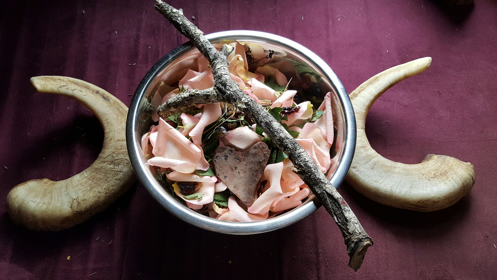 A prayer is released out into the world for Love. As it spirals its way through the melting snows and into the warming soils, it carries the experience and memory of ancestors whose hands once crushed herbs with intent to heal. It carries with it peace on the scent of lavender and the purple color which royaly found so pleasing it claimed for its own, though now it returns to all. Buzzing excitement of ecstacy is found on lemon balm and the lightness of heart it creates. Pink roses carry a Universal Love and opening of the heart. Hot peppers bring a touch of fire and urgency to the change of paradigm as the lemon grass sways tall with attraction to help pollinate the new ideas. Mugwort carries the new Dreams into all beings, even those stuck in the past. An offering of cornmeal centers the heart of time and place to one of earth honoring. Bees themselves add the Vibration of Pure Love, especially the one that offered her body as the connection to the Hive. She Dances the Prayer of Love eternally, a Sacred Offering from the Bee, to enliven the spiral and guide the Love to where it needs to go. Sealed with wax and Love!