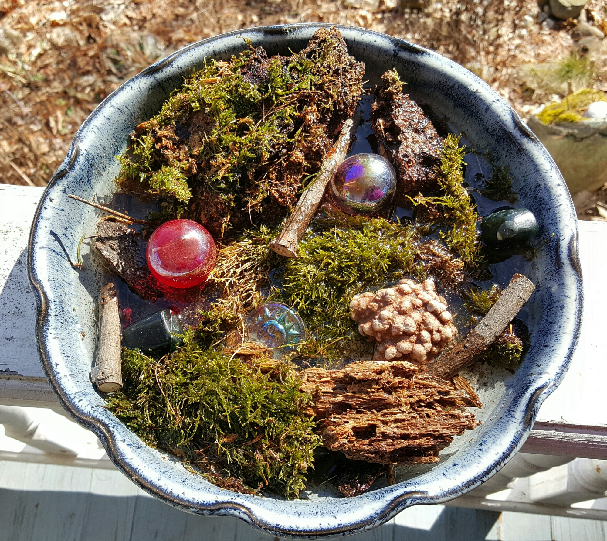Creating a water offering for bees is a fun way to get involved in helping bees and it is only limited by your your imagination!  I like to imagine myself as a bee and think what would I like to land on, how would I want it to look, and what types of extra medicines would I want as options?