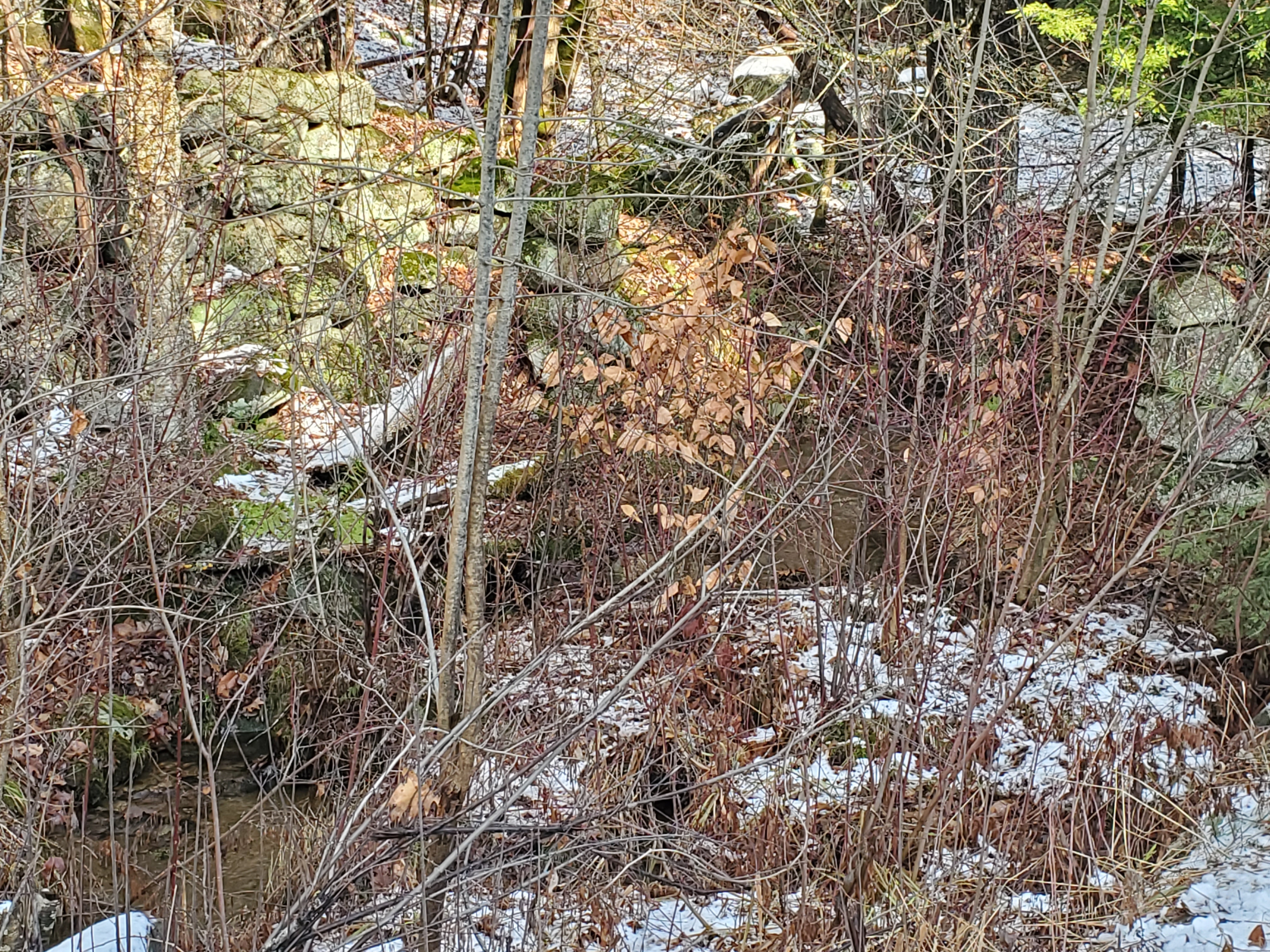 I thought of changing boundaries, as I saw the many rock walls, criss-crossing the entire landscape, as is common in New England.  They are evidence of boundaries from the past that do not always match the boundaries of the present.  Which boundary is for which beings?  Or more closer to the truth, which parts of ourselves are we trying to keep separate?  Do we fear those parts of ourselves or fear the parts of ourselves that created the divide?  Are we ashamed of those parts we hold on the “other” side or ashamed of the parts of ourselves that continue to follow the boundaries of the past when our steps are planted in the present?  Perhaps we have been so focused on the forest that we didn’t even realize we were tripping over the rock walls and we are ashamed of our lack of sight.